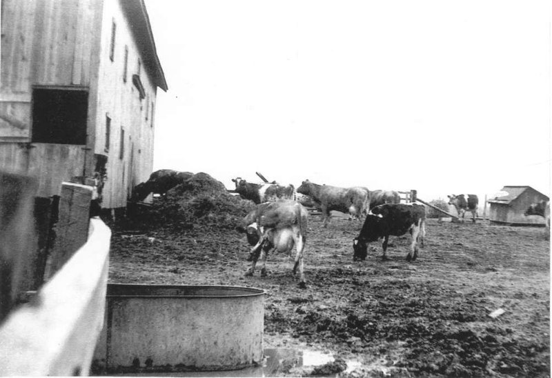 Inside, on the west side of this barn, were stalls for the bull and for cows with calves and in the center was room for storing a wagon or other farm implements. On the east side were stanchions for milking ten cows. My cousins remember that originally there were more stanchions, but some were removed to create a small creamery room where the milk was separated and the milk could be temporarily stored in milk cans (Pluimer). Although Pop did use electric milking machines after electricity came in 1937 or 1938, this was never considered strictly a dairy farm, and the dairy part of the farm business was phased out in the 1950s.