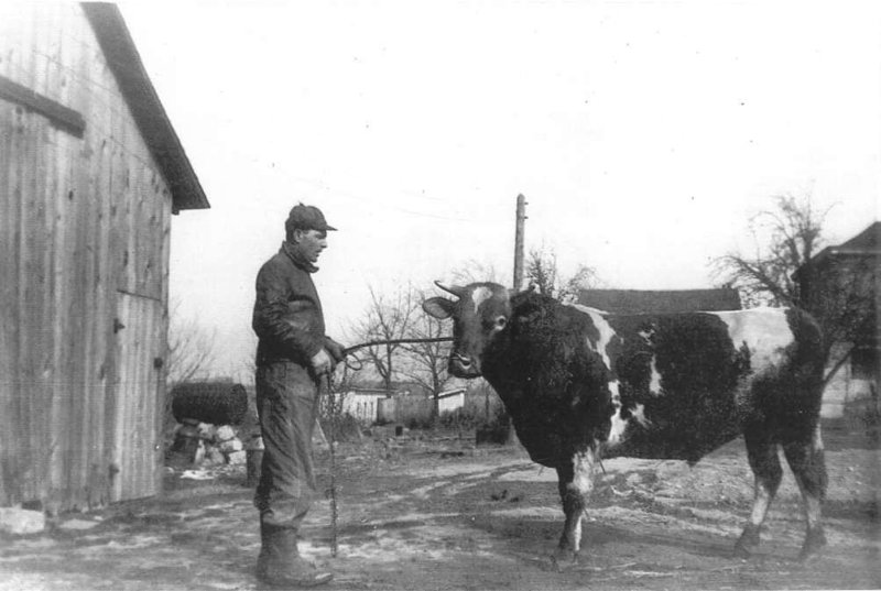 The farm that John and Rose bought had 123 acres with a large two-story house, two barns and a corn crib, and some smaller outbuildings. It was already well- established and suitable for the very traditional multi-functional kind of farming my grandparents intended to employ. On this farm my grandfather raised milk cows (Registered Shorthorns for which the Trant family were well-known), Hampshire hogs, and a herd of Registered Black Angus beef cattle. Like most farm women of that time period, my grandmother raised chickens, lots of them. Horse power was furnished by the team of Dutch and Old Nell, and much of the 123 acres produced corn, wheat, and oats. While many farmers in the county were adapting to gas-powered machinery by this time, my grandfather continued to use draft horses and many of the old methods of farming well into the 1950s. Hay was stored loose rather than baled, corn was shelled in hand-cranked shellers, and wheat winnowed by a small winnowing machine. Only after my father returned from WW2 Service in 1946 did Pop and my Uncle Russell, buy a John Deere Model A tractor to replace Old Nell and Dutch.