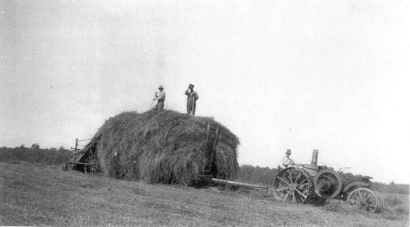 As modern technology was introduced into agriculture, work on the farm changed. The barn reflected that change. The inventions of hay balers, threshers, and silos increased the production of grain and in turn led to bigger herds of cattle on farms. When overhead hay carriers and hay forks were shown to be labor saving, the hay hood and structure of the barn rafters changed to accommodate them. Steam power and the gasoline engine reduced the need for draft horses and all the hay that they required, but farm machinery still needed to be stored and protected, although it required a different kind storage space than horses. Electricity introduced specialized equipment and influenced growth, particularly in the dairy industry, It also lengthened the farmer’s day (Noble and Cleek 14).